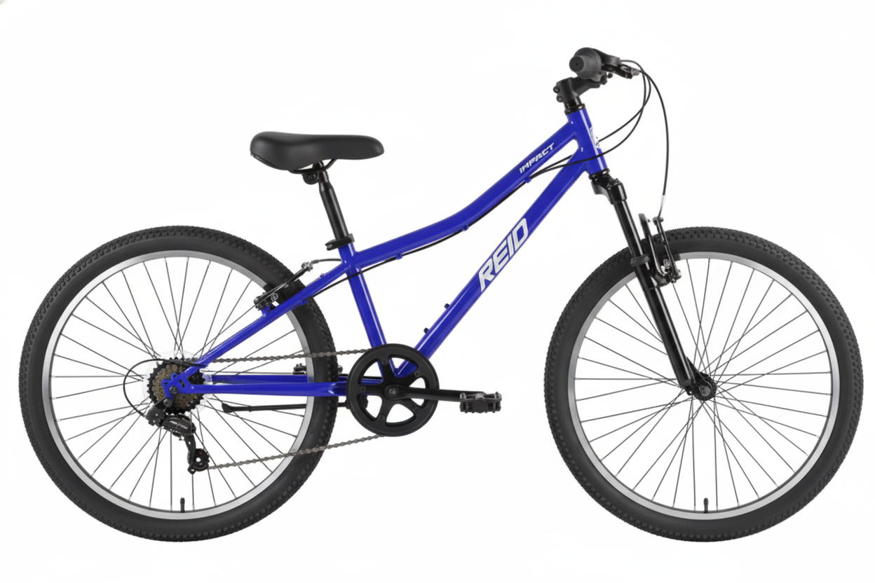 The Reid Impact, a 24″ wheel kids’ mountain bike, seamlessly blends affordability with a premium feel. Crafted with sleek steel tubes, this entry-level bike features a 7-speed Shimano gear system and powerful V brakes, offering kids a taste of versatility and safety. At an accessible price point, the Impact provides a sophisticated look without compromising on quality.